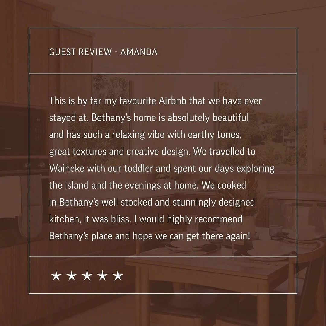 “We had a blast on the island and Bethany’s place was the perfect place to stay. Great central location! Clean and cozy. She gave us wonderful winery recommendations and the kitchen was well stocked with tea and coffee. We would definitely stay again here if our travels brought us back to Waiheke!”